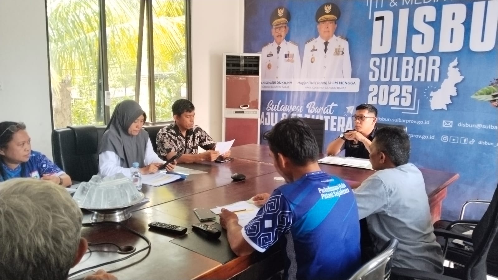 Rapat ini dipimpin Plt Kepala Bidang Pengolahan dan Pemasaran Hasil Dinas Perkebunan Sulbar, Agustina Palimbong mewakili Kepala Dinas Perkebunan Sulbar Herdin Ismail.